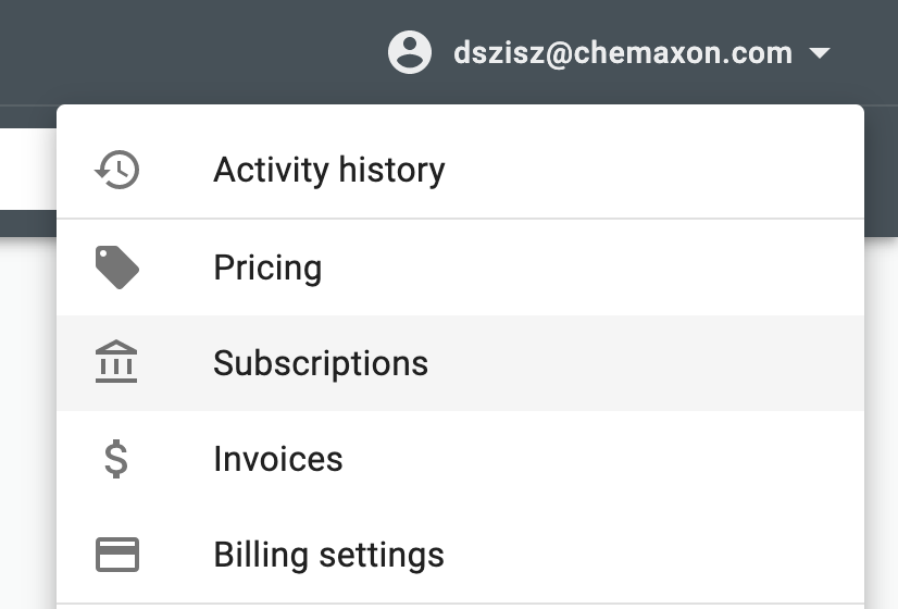 Chemicalize profile menu subscriptions