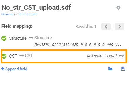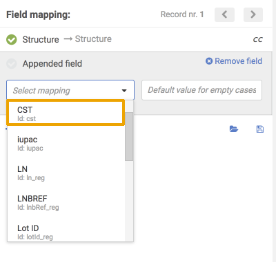 Similarly, in order to bulk register No structure compounds with CST, the value from the SDF should be mapped with the "CST" field in the application.