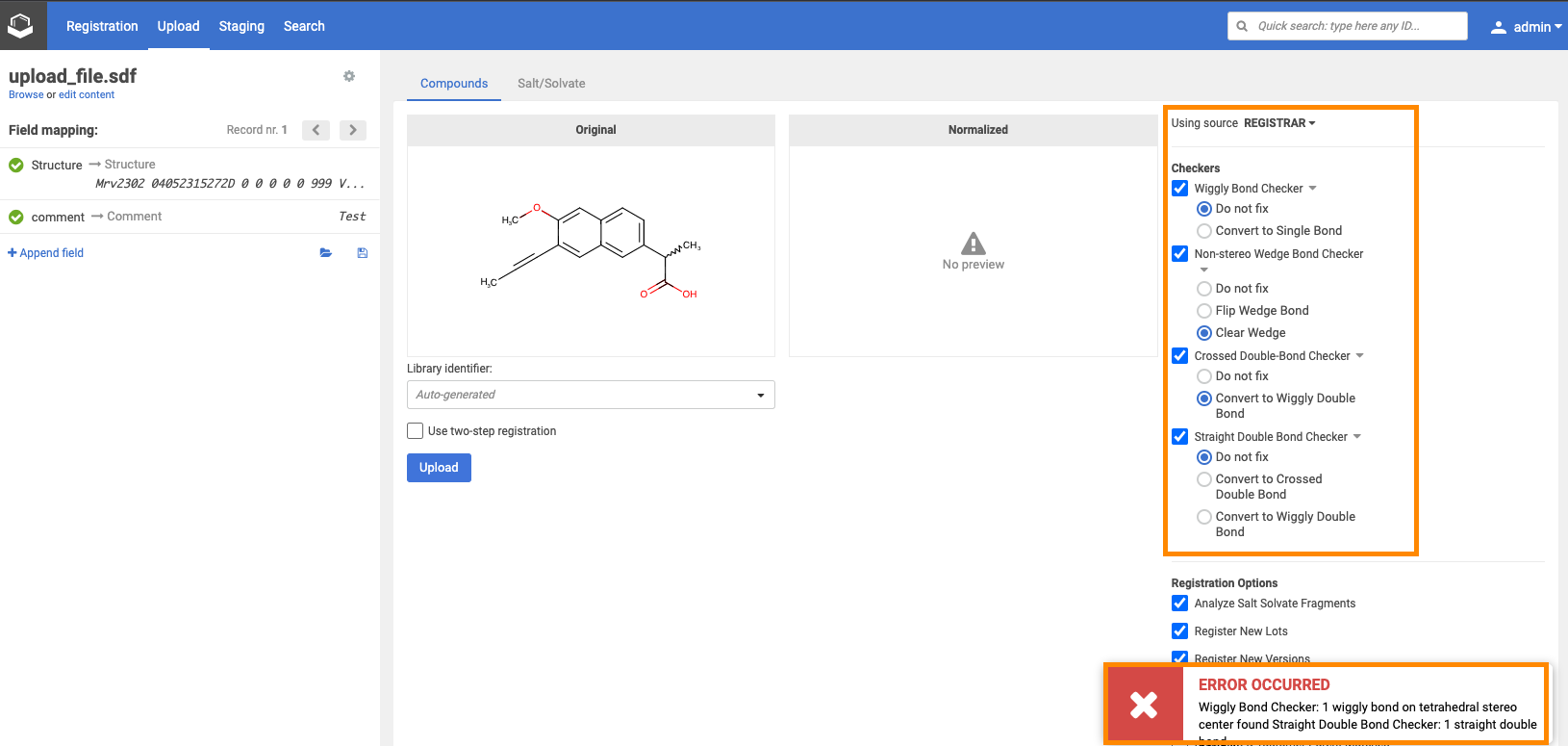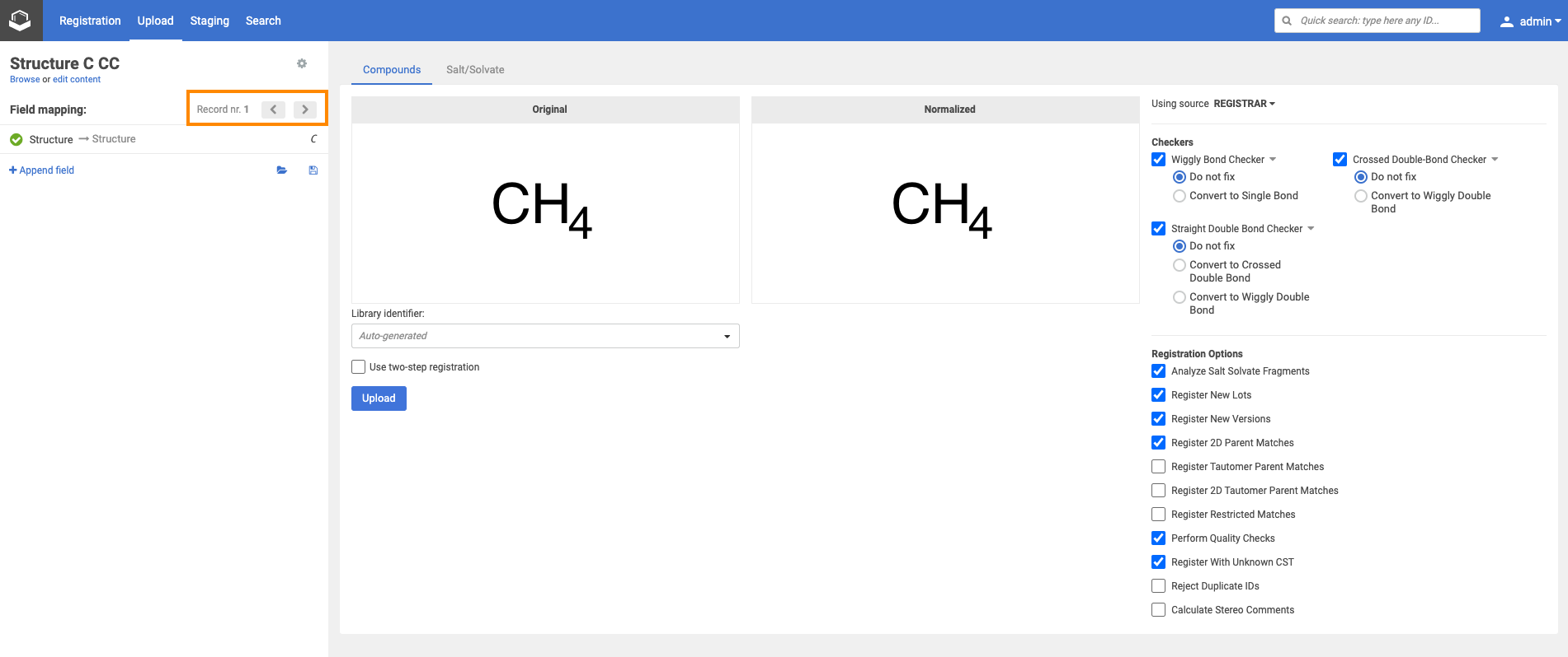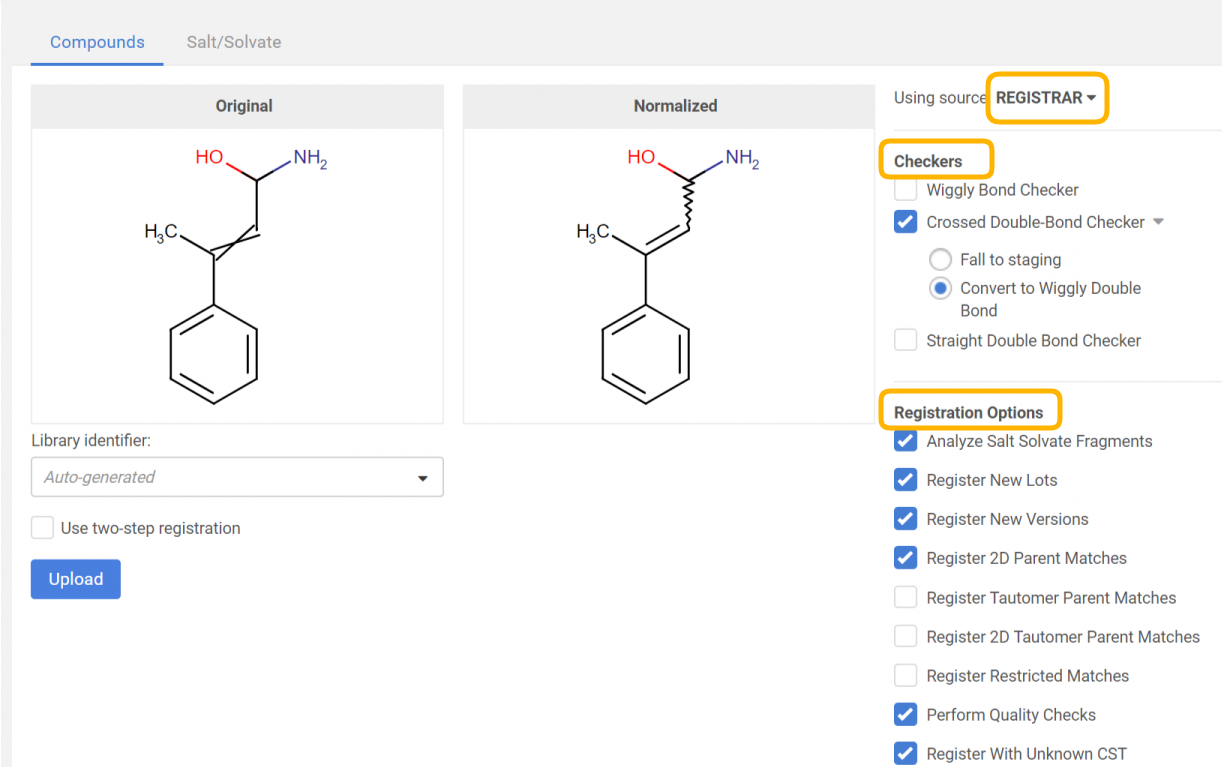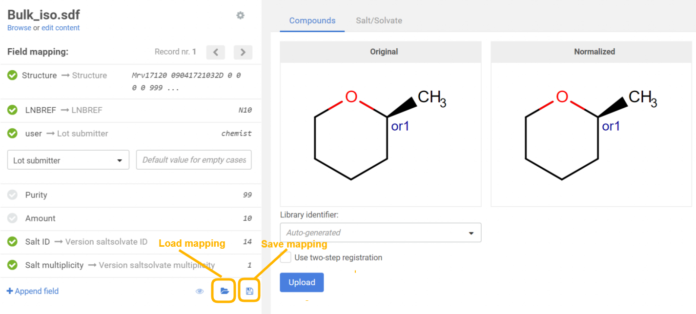 - Uploading an SDF that contains compound and salt/solvate structures