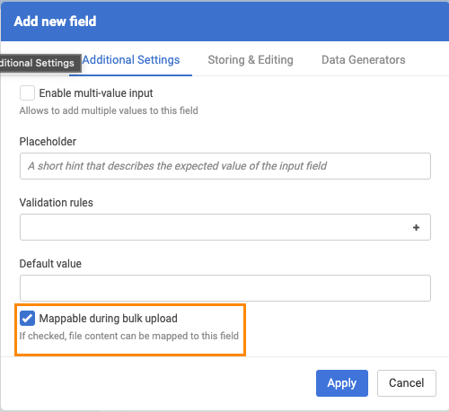 | Field mapping before uploading a file |