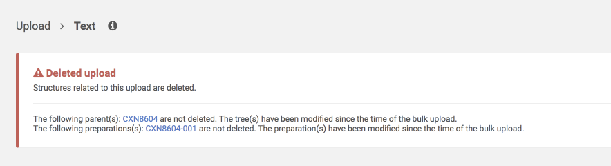 - Uploaded structure cannot be bulk deleted if it was amended: the parent/version/lot structure or additional data has been modified.