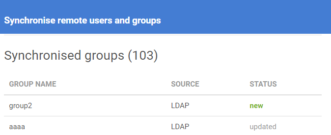New: Newly created remote Groups are counted here. After clicking on the Synchronize button again these will be counted as updated groups.