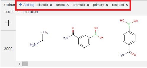 In case of repeatedly used names, a different sequential number at the end (e.g., amines(2), amines(3), and so on) is given automatically.