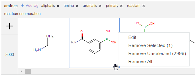 Hover over a structure, a menu appears at the bottom right corner of the structure box. This menu offers to remove selected, unselected, or all structures.