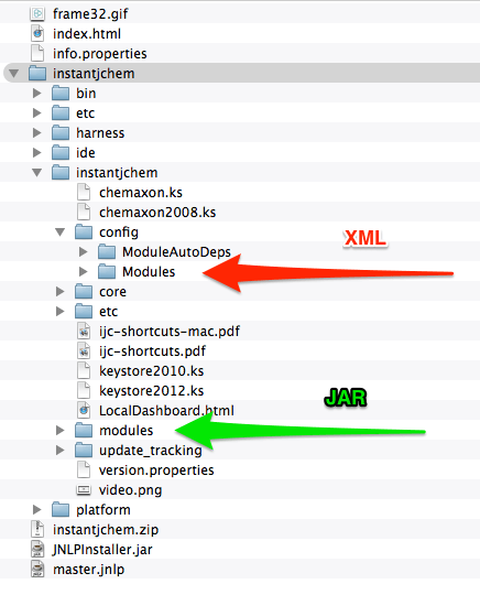 If you have compatible standalone module plugin developed against IJC platform you need to include the content of two folders to instantjchem/ folder in instantjchem.zip file: