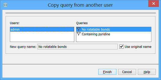 • Do not create temporary query if it returns no hits : By default, even if no hits are returned, a temporary query is created, which you can then rerun. If you select this checkbox, no such temporary query will be created.
