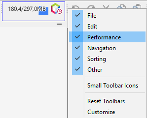 There is a memory toolbar that lets you monitor memory utilization. If this is not displayed, right click in an empty area of the toolbar and check the Memory checkbox.