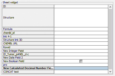 The Multi Field Sheet Widget is a widget that allows data for multiple fields to be displayed in a compact form.Since version 21.8.0, it can include also the fildes from child convergent entity. The widget displays the data in two columns, with the field name in the left column and the field value in the right column. It is best suited for displaying contents of fields whose data takes up little space such as numbers, dates and short text. Full control over formatting of data is still possible. It has this icon in the form builder Design mode toolbar: images/download/attachments/1805017/sheet.png