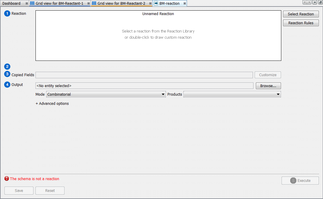 4. Selecting the Bischler-Mohlau reaction by clicking on the Select Reaction button