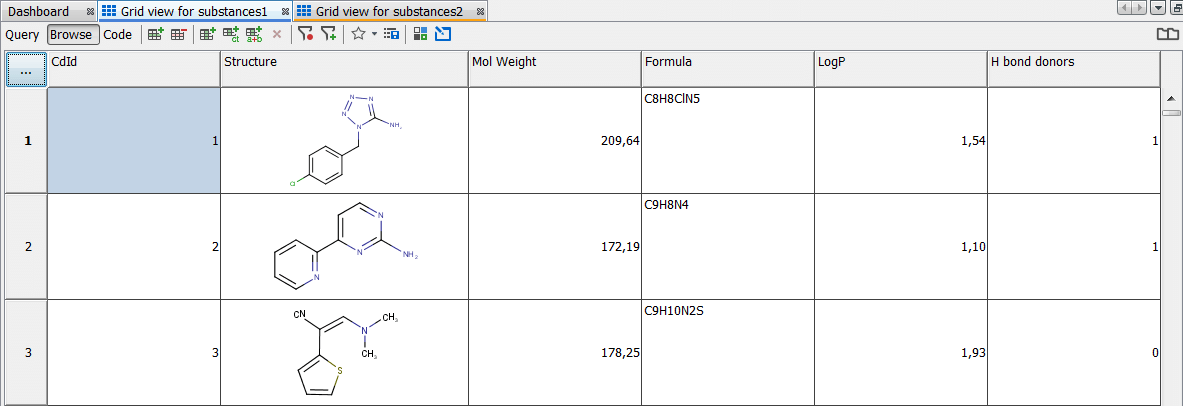 Go to Grid view for substances1