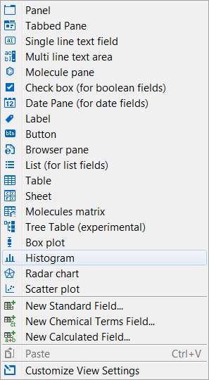 New Chemical Terms (CT) Field can be created using toolbar button or by choosing *New Chemical Terms Field... * from the ... button menu