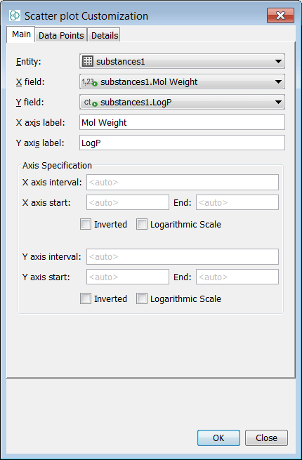 Using the calculated property fields this section will show how this data can be viewed in Instant JChem using the Chart Widgets.