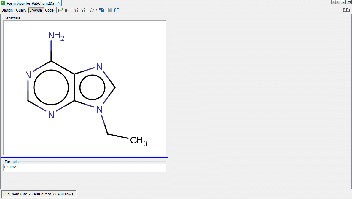 Once import is completed we can execute some queries within the entity to assist in understanding the default rules and how they impact on search and display. Open a grid view or create a new default form view with MolPanel and view all records. The first thing the astute user will notice is that the molecule's visible in the display appear to have not been standardized according to the default rules. In fact, the internal table stores both the original and standardized versions of the structures and there is a visual properties, display setting property for the widget.