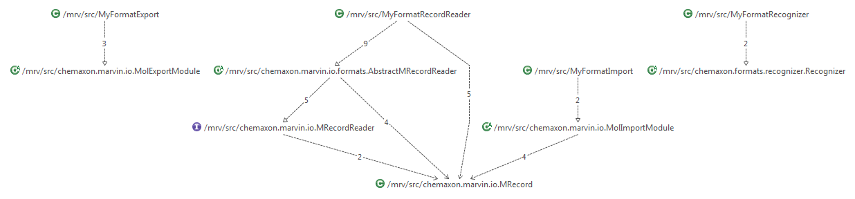 Sometimes it is useful to implement the format recognition for your own format to detect the input format from the content of the structure file in order to import the structure file without file format specification parameter. The implementation of the tryToRecognize() and needsMore() from the Recognizer interface is needed. This functionality is just optional.