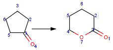 • If atom mapping is not unambiguous (e.g. the same atom map appears two or more times on the product side, or alternatively on the reactant side) then only one of the mapped atoms will be used to calculate the reacting center and it is arbitrary which one is used.