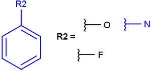 Homology groups stand for sets of homolog molecular parts (e.g., functional groups). These are represented by pseudo atoms labelled with the common chemical annotation of the groups (alkyl, aryl, heterocycle, etc.). See the detailed definition of these groups in a separate document. The pseudo atoms can be most easily drawn in Marvin Sketch using the Homology Groups template group .