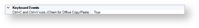 Use this option to specify whether JChem for Excel handles Ctrl+C and Ctrl+V events or not. You can easily copy-and-paste structures between MS Office applications when JChem for Excel handles the keyboard events.