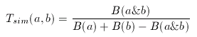 where a and b are two binary fingerprints, & denotes binary bit-wise and-operator, | denotes binary bit-wise or-operator and B( x ) is the number of 1 bits in any binary fingerprint x: