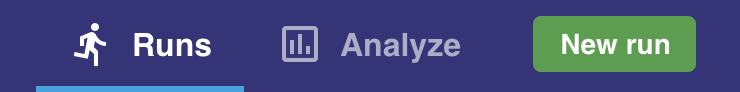 The Runs page lists all previous runs in a table format. Selecting runs from the list add them to the Analyze page for further analysis.