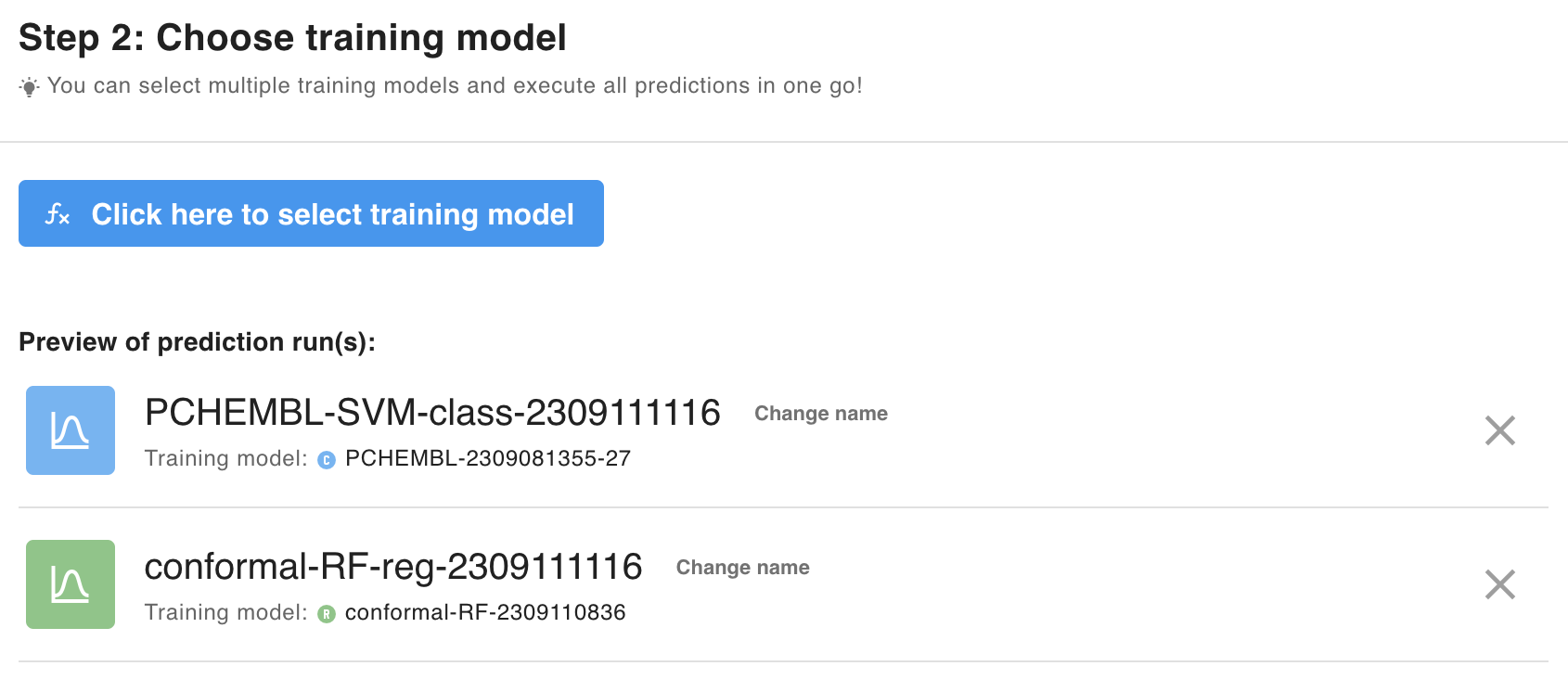 Multiple training models can be selected and their runs be executed in one go!