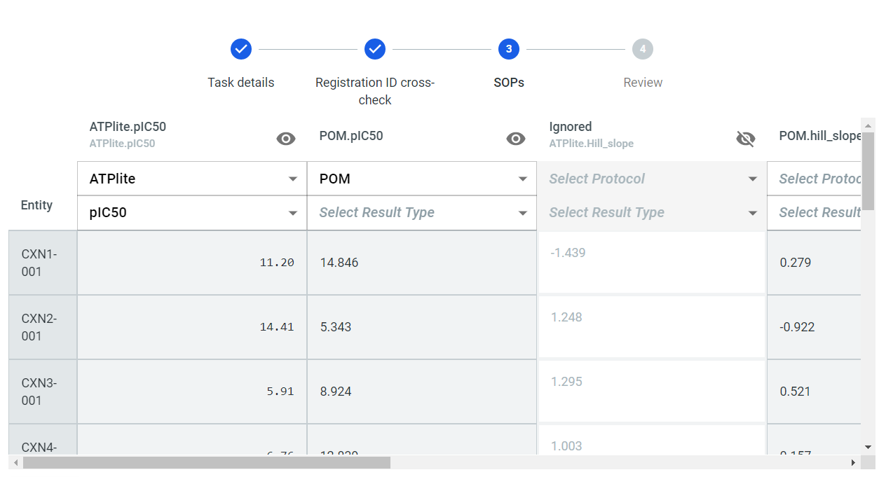 * > the first column (Column A) contains the entity description (the ID of the compound used in a registration system)
