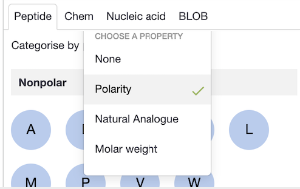 Assuming a Biomolecule Toolkit established and categories for monomer grouping are configured, BioEddie is able to use the monomers’ values for grouping.
