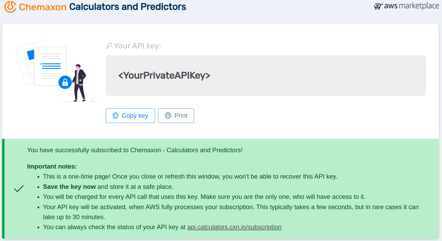 There is only one requirement to start using Chemaxon Calculators and Predictors, you need to have an AWS account, with the right permissions to manage AWS Marketplace Subscriptions.
