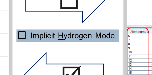 Implicit Hydrogen Mode : hydrogens are displayed only on hetero and terminal atoms.Note If you switch off this mode: