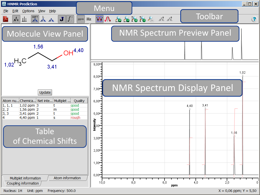 The NMR Predictor graphical user interface (GUI) has the following features: