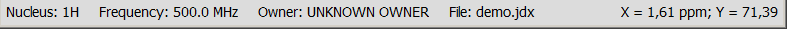 The status bar of NMR Spectrum Viewer displays the X and Y coordinates of mouse cursor position, and the following data get stored in the opened in a JCAMP-DX file: