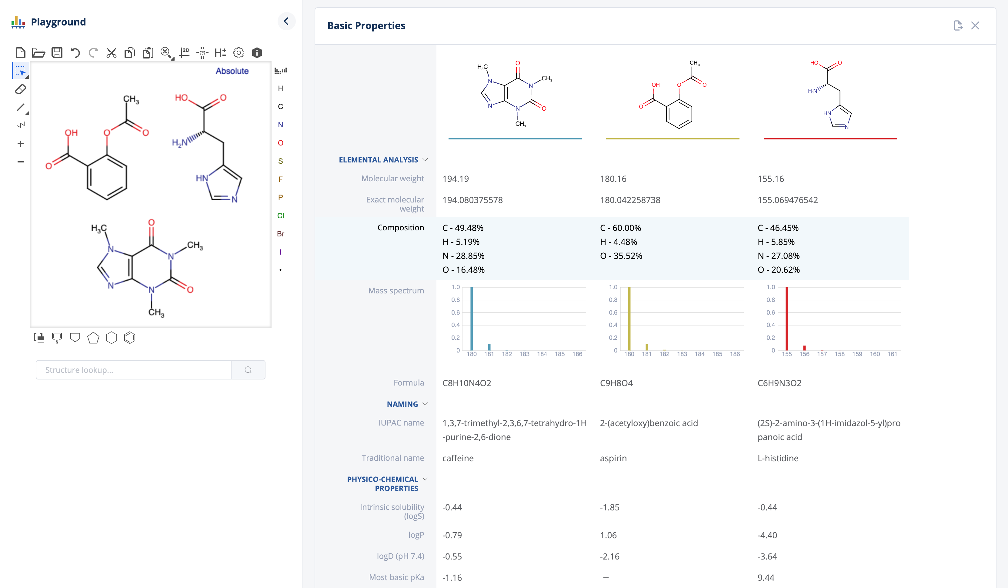 Playground is an easy-to-use web application that allows scientists to access Chemaxon's physico-chemical property calculators/predictors and analyse the results in an interactive way.