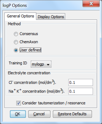 Fig. 2 The log P options window showing how to apply the training library