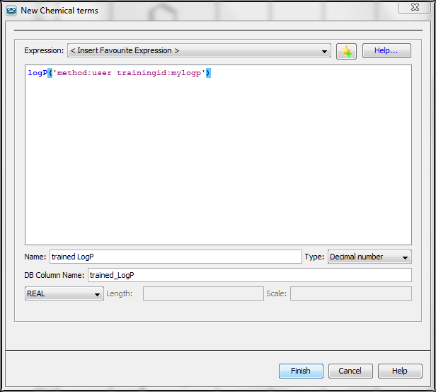 The following figure presents the usage of log *P * training in the 'New Chemical terms' window. The expression
