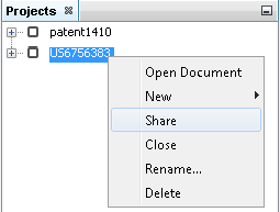 Project explorer panel displays the opened projects and represents the project's structure in a tree-like hierarchical way. Every project contains a single document, but you may add as many Markush structures and compound lists as you want. All Markush structures automatically obtain an Exemplified structures list.