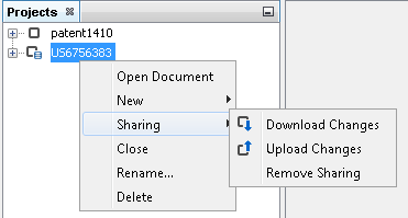 After successful sharing, a new indicator icon appears next to the project, and you are able to upload your modifications or download the newer version of the project.