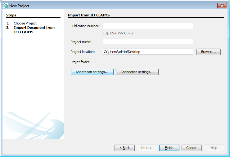 If you have IFI Claim access, you can also import documents directly fromIFI Claims. The import wizard automatically tries to find the corresponding document in IFI Claims and automatically downloads the HTML version of the patent.