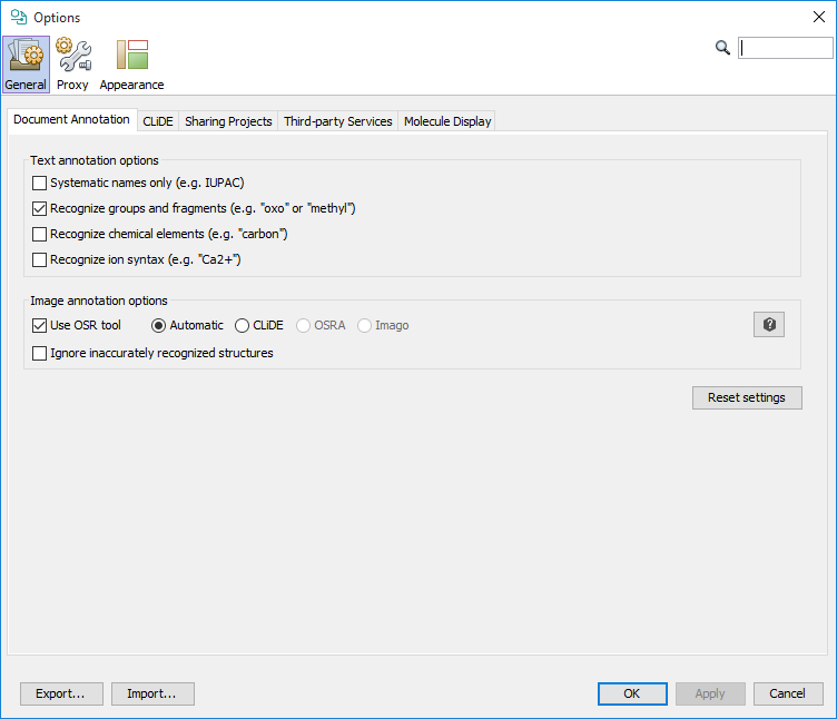 ChemCurator offers multiple functions to help in the recognition and extraction of the relevant chemical information from documents.