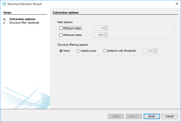 Minimum mass : set the minimum molar mass for the structures to be extracted.