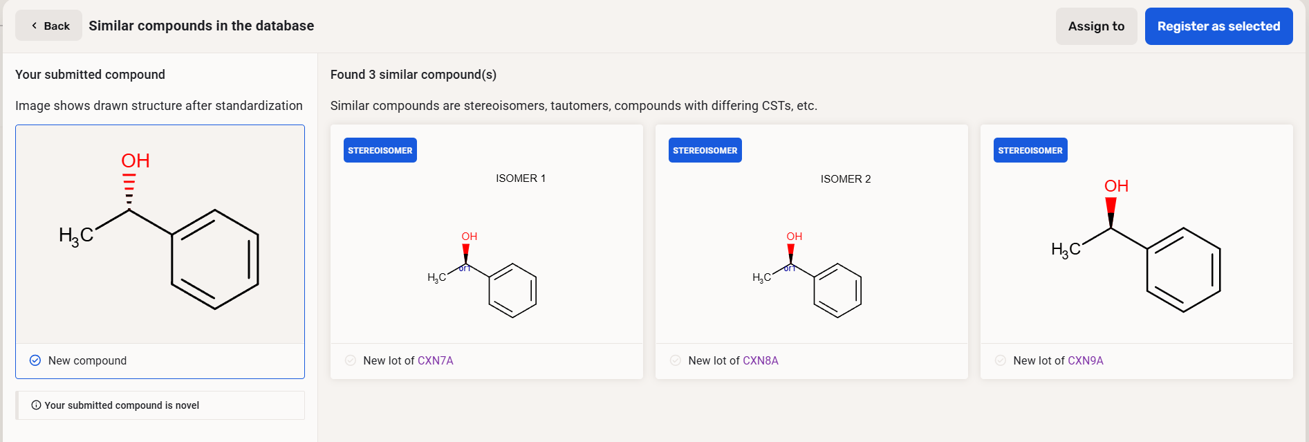 Before registering a structure and/or CST, the compound is first validated, standardized, checked and fixed. Finally, the structure to be registered is checked for any exact parent matches (considering also CSTs).