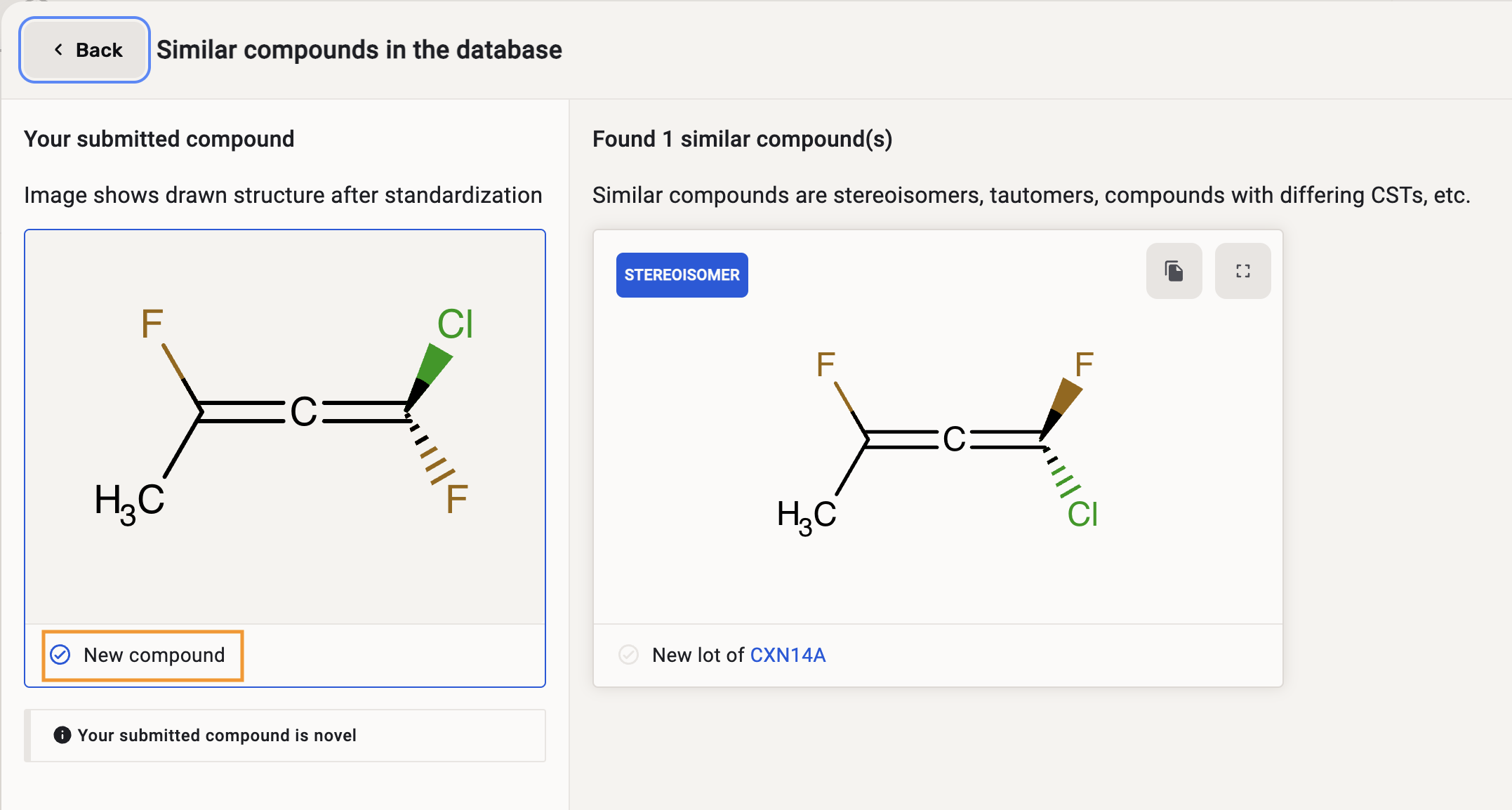 | Stereoisomers displayed as similar compounds |