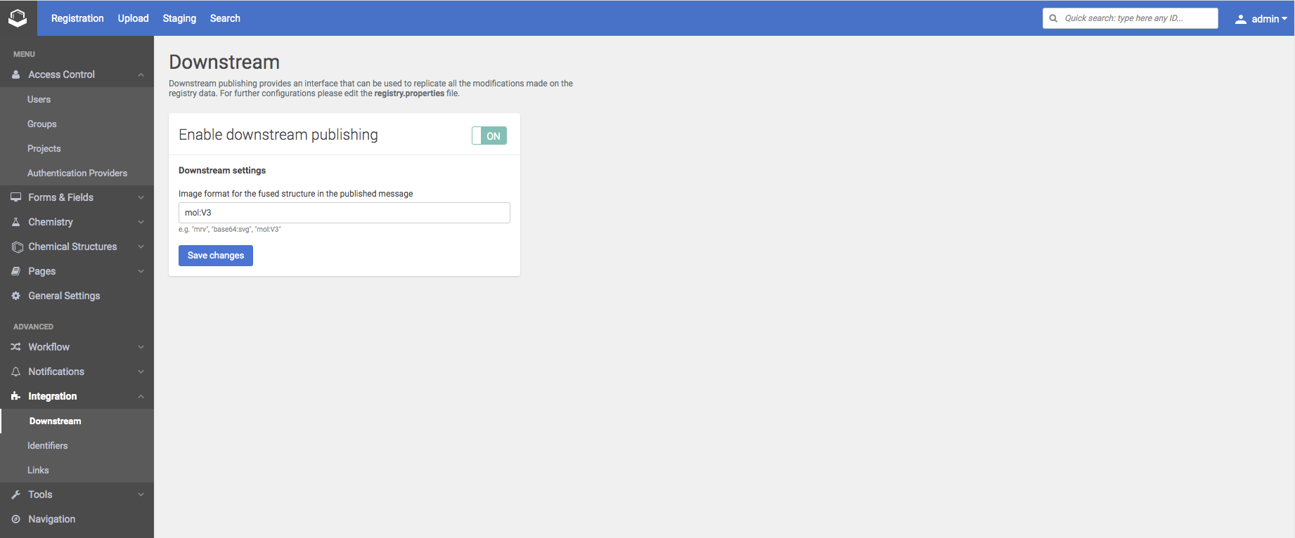 By enabling the downstream publishing the JMS publishing in case of changes is controlled.