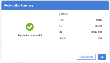 - Inspect the Registration summary window.