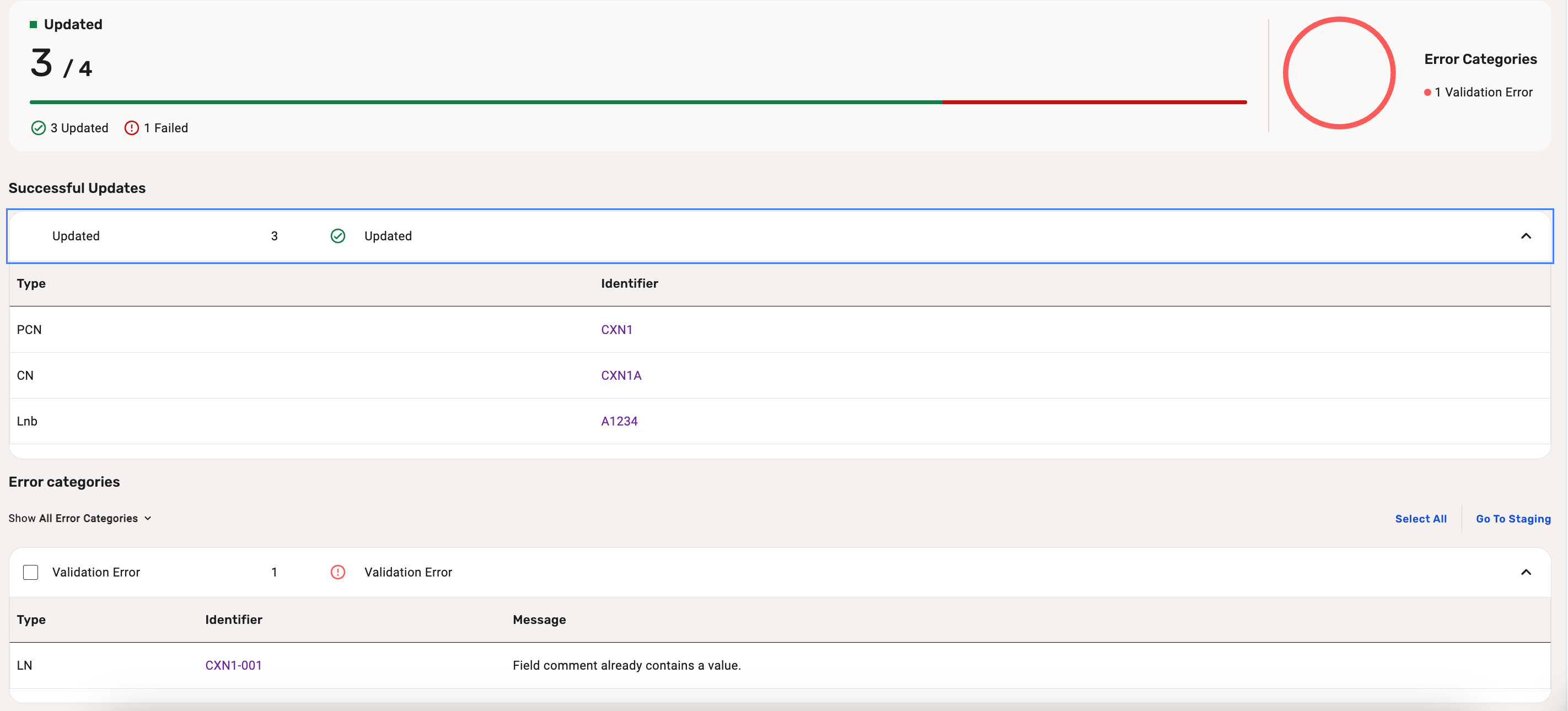 | Bulk update summary |