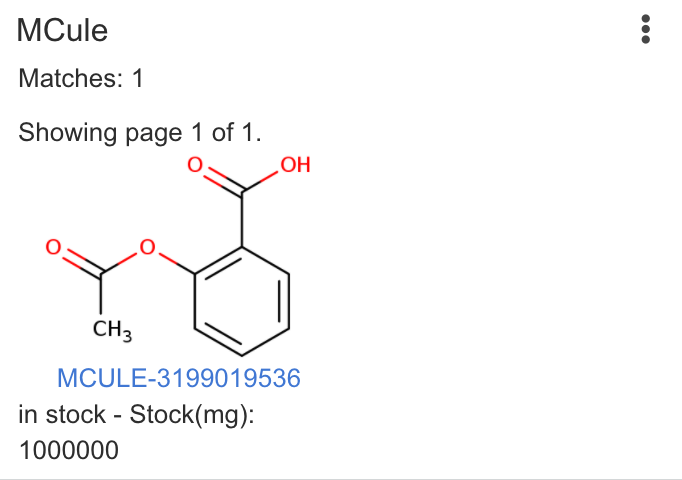| Mcule | Runs similarity searches in the Mcule online catalog. Requires online access to Mcule involving your query structure. |