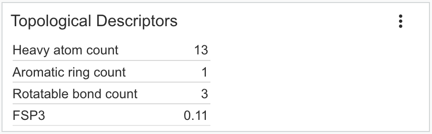 Heavy atom count: 13 Aromatic ring count: 1 Rotatable bond count: 3 FSP3: 0.11 |