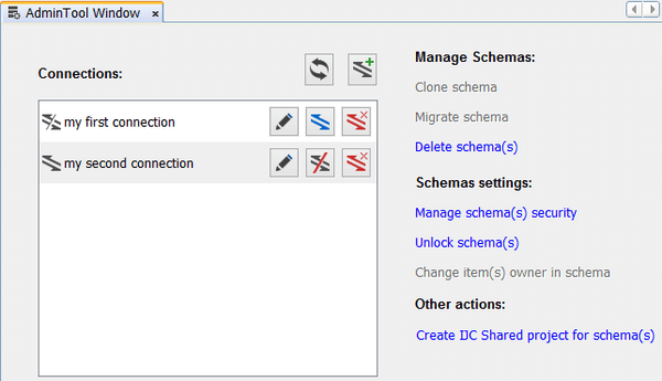 When new connection is added, the tool also connects to it and displays it in Admin Tool Window.