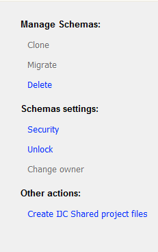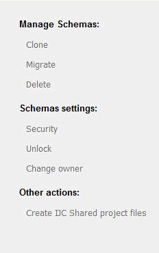 The number of schemas that are selected in schema list affects the operations menu on the right as illustrated in the following example.