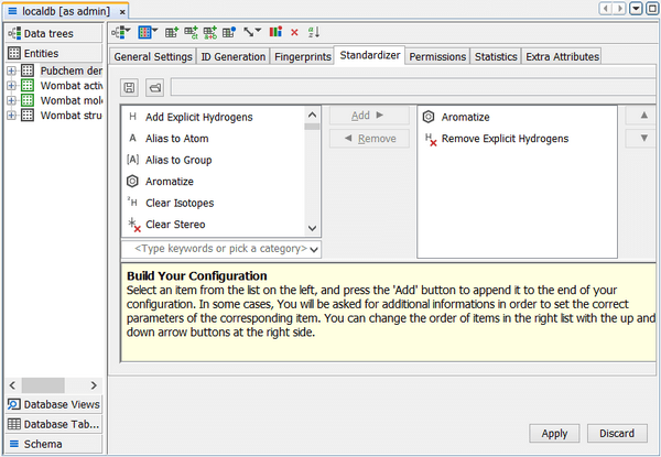 This tip shows how to set custom standardization for a JChem table. Setting a standardizer allows you to define chemical business rules for a JChem structure table. This lets you define things like: