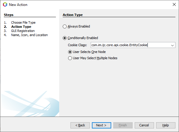 Conditionally Enabledaction that will be sensitive to 'EntityCookie', which represent tables in IJC. Typecom.im.ijc.core.api.cookie.EntityCookieinto 'Cookie Class' field as shown here:Click