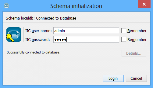 • To make 'structural' changes to the database you need to be logged in to the database as the schema administrator. If you have sufficient privileges then you will be prompted for whether you want to connect as the schema administrator. If you do you will prevent other users from connecting as the schema administrator. More normal users can be connected at the same time. Note that this is only valid for MySQL and Oracle, as the Derby database in IJC is not designed for concurrent access. You are always logged in as the schema administrator if you are using local Derby database.